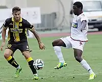 He then moved to Greece where on 3 September 2014, he signed a short-term contract with Superleague Greece side, Veria F.C.[7][8] He made his club debut on 29 October 2014 in a 2–0 win over Ergotelis F.C. in the 2014–15 Greek Football Cup.[9][10] He made his Superleague debut on 20 December 2014 in a 1–1 draw against Panthrakikos F.C.[11][12]