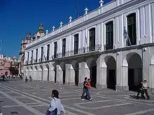 Marble cladding and a bell tower were added in 1885, though the latter was removed during the cabildo's restoration in the late 1930s, when numerous historic structures in Argentina were restored to their approximate, original design by having such additions demolished. The Córdoba Cabildo, like the Cathedral, was declared a National Historic Monument in 1941.[1] The city government was relocated to a Renaissance Revivalist structure late in the 19th century, and to a Modernist building (its current home) in the 1960s. A section of the historic cabildo remained in use by the Provincial Police Department of Information (DDI), however, and during the last dictatorship, this wing was used as one of over 300 detention centers operated by the regime during the Dirty War of the late 1970s.[2]