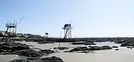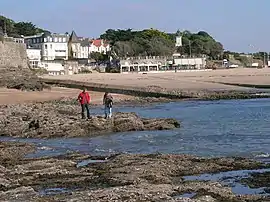 To the south, from La Plaine-sur-Mer to La Bernerie-en-Retz, the coast is wilder and presents a succession of coves and more or less reduced beaches, separated by rocky areas with larger schist cliffs. These then fade into the mudflats, salt marshes and polders of the Marais Breton around Les Moutiers-en-Retz.[1][2]