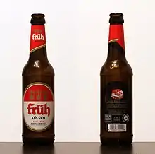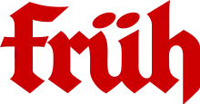 Cölner Hofbräu Früh (German pronunciation: [ˈkœlnɐ ˈhoːfbʁɔʏ ˈfʁyː]; or just Früh) is a private brewery for top-fermented beer called Kölsch.[2][3] The brewery was founded in Cologne in 1904[4] by Peter Joseph Früh.[5][6][2] Since 1987, the beer is no longer brewed directly in the house, but in a brewing facility in Cologne-Feldkassel. The former brewery area and the former living quarters of the Früh family were redesigned and restored. In the medieval vaults of the fermentation and storage cellars, new guest rooms were created and on the second floor the Hofbräustuben for more sophisticated tastes.[2]