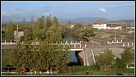 The Călinești-Oaș Dam was built in 1972 on the river Tur near the confluence with the Valea Rea between the Hurca and Jelejnic Hills.[8] It creates an artificial lake of 357 ha (3.57 km2) and with a total volume of 0.027 km3 (0.0065 cu mi). In the same year the Călineşti-Oaş Micro - Hydropower Station was built having a low capacity Pelton turbine of only 0.8 MW.[8]