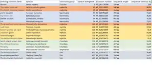 After running SAPS on a group of orthologs (Gorilla, Rat, Dog, and Bat), the protein's composition only shows minor variations compared to the human sequence: Proline is still the most abundant amino acid followed by leucine and tryptophan remains the least abundant.[13]