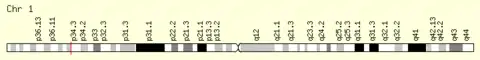 C1orf94 is located on the short arm of chromosome 1 specifically at 1p34.3 chr1:34,166,883-34,219,131 and is situated near HSPD1P14 gene. It is encoded on the sense strand.[6]