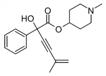 - ↑ Baumgold J, Abood LG, Aronstam R (March 1977). "Studies on the relationship of binding affinity to psychoactive and anticholingergic potency of a group of psychotomimetic glycolates". Brain Research. 124 (2): 331–40. doi:10.1016/0006-8993(77)90889-7. PMID 843950. S2CID 35326203.
