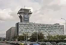 The CETIN building is a building complex in Žižkov, Prague 3 district near Olšany Cemetery.[1] Built in 1979 as the Central Telecommunications Building (Czech: Ústřední telekomunikační budova),[2] it became the headquarters of major operators such as SPT Telecom and O2 Czech Republic after the Velvet Revolution and formation of the Czech Republic. In 2017, the complex was bought by Czech developer Central Group, and until 2022, it will serve as headquarters of the CETIN telecommunications company. The main tower has a roof height of 85 meters and stands a total of 96 meters with its antenna.[3]