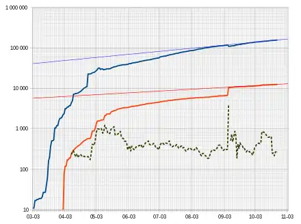 On the morning of 17 March, the Ecuadorian government confirmed a total of 111 positive cases.[35] The following day the Ecuadorian government confirmed a total of 155 positive cases.[36] increased to 168 positive cases in the afternoon.[37] The number of confirmed cases increased daily,[38] by the morning of 20 March, the number of confirmed cases had increased to 367, with 582 suspected cases, 5 deaths and 4 recoveries.[39]