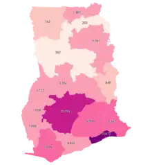 ![]() Cumulative cases of COVID-19 in Ghana by region as at 17 November 2021