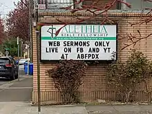 Sign of a Portland church live streaming sermons