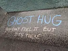Chalk writing on a sidewalk in southeast Portland during the pandemic