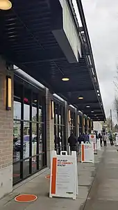 School closures and event cancellations prompted people to stock up on groceries. Long lines were seen at grocery stores and food pantries throughout the Portland metropolitan area.[40] Local cannabis dispensaries saw an increased demand as customers stocked up in case stores were forced to close temporarily.[41] The Oregon Liquor Control Commission (OLCC) permitted stores to operate via curbside pick-up and home delivery temporarily.[42][43][44]