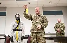 Members of the West Virginia National Guard provide personal protective equipment training on March 16, 2020