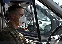 A member of the Maryland National Guard before transporting passengers from Grand Princess