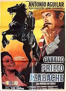 Caballo prieto azabache (La tumba de Villa) is a 1968 Mexican historical drama film starring Antonio Aguilar, Flor Silvestre, and Jaime Fernández. It focuses on a horse breeder named Jesús who is set on buying a horse known as "Caballo prieto" (dark horse) and pursuing a relationship with a singer named Genoveva Alarios. With he and Genoveva eventually recruited as spies for the revolutionary leader Pancho Villa. The film was successful at the box-office and stayed in theaters for a surprising nine weeks.[1]