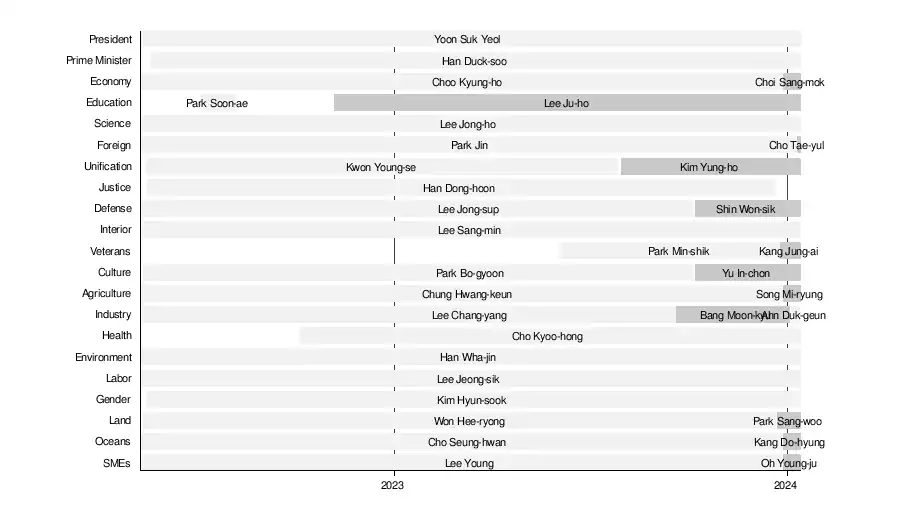 | Minister for Government Policy Coordination | Bang Moon-kyu | 8 June 2022 | 24 August 2023 | ||