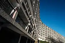 Cables Wynd House, better known as the Leith Banana Flats[1][2] or the Banana Block[3] because of its curved shape, is a nine-storey local authority housing block in Leith, Edinburgh. The building, in fact, has ten storeys. The ground floor is called Cables Wynd and the nine floors above constitute Cables Wynd House. This often leads to confusion in postal and other services.