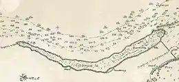 Among the improvements recommended by a 1930s board headed by Rear Admiral Arthur Japy Hepburn in the run-up to World War II was a breakwater upon Luminao Reef to the west of Cabras Island. Construction began in August 1941. Limestone blocks quarried at Cabras Island were skidded along the reef to an improvised derrick. By the time of the Japanese invasion in December 1941, one mile of breakwater, 36 feet wide five-feet above sea level had been constructed.[1]: 344 The Glass Breakwater, named after the captain who captured Guam in 1898, was extended on Calalan Bank 3,260 feet (990 m) to a width of 32 feet (9.8 m). The northern arm of Apra Harbor, from the main island through Cabras to the tip of the breakwater at Spanish Rocks measured 17,000 feet (5,200 m).[1]: 350
