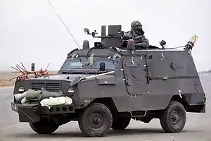 The Cadillac Gage Ranger known popularly and in United States military service as the Cadillac Gage Peacekeeper or Cadillac Gage Peacekeeper I, is a four-wheeled armored personnel carrier marketed as an internal security vehicle, produced by Cadillac Gage (now Textron Marine & Land Systems). Built on a Dodge truck chassis, production began in 1979 to produce an armored vehicle for the United States Air Force (USAF) Security Forces, its largest customer, though Luxembourg and Indonesia also reportedly used Rangers as well. The Ranger also saw considerable service with law enforcement as a SWAT vehicle.