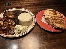 Cafecito is a chain of counter service[1] coffee and sandwich shops in Chicago.[2][3] The Latin American menu has included Cuban,[4] egg, and other breakfast sandwiches, as well as soups, salads, batidos (milkshakes),[5] and coffee, including Cuban espresso.[6][7] The ropa vieja sandwich has skirt steak, plantains, black beans, and tomato creole sauce, and the chivito has steak, ham, bacon, fried egg, and mozzarella.[8] The restaurant has vegan options as well.[9] Sides have included roasted eggplant, cannellini bean salad, and artichokes.[10]