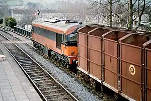 ![]() CIE 001 Class 052 departing Cahir station with a westbound fertiliser train on 26 February 1982. | |