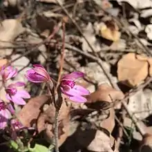 The little pink fan orchid is found between Perth and Bremer Bay in the Avon Wheatbelt, Esperance Plains, Jarrah Forest, Swan Coastal Plain and Warren biogeographic regions growing in forest and woodland where it rarely flowers unless subject to bushfire in the previous summer.[2][3][4]