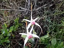 Caladenia nivalis, commonly known as the exotic spider orchid[2] or crystalline spider orchid,[3] is a species of orchid endemic to the south-west of Western Australia. This orchid is easily distinguished by its bright white to pale pink and red flowers and its narrow range in and near the Leeuwin-Naturaliste National Park.