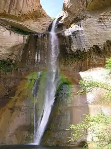 Calf Creek Falls refers to a pair of perennial waterfalls on the Calf Creek in the Grand Staircase–Escalante National Monument in central Garfield County, Utah, United States,[1] that total 214 feet (65 m).