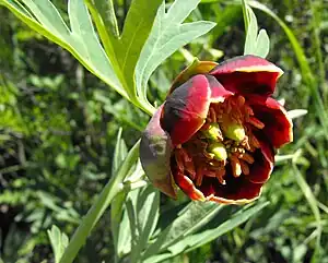{{cite journal}}: CS1 maint: multiple names: authors list (link) cited on "The Western American species of Paeonia". Paeon. Retrieved 2016-06-13. - ↑ "Paeonia californica". The Plantlist. Retrieved 2016-06-18.