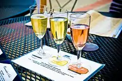 Its contemporary wine production grew steadily since the end of Prohibition, but mostly known for its sweet, port-style and jug wine products. As the market favored French brands, California's table wine business grew modestly,[5] but quickly gained international prominence at the Paris Wine Tasting of 1976, when renown French oenophiles, in a blind tasting, ranked the California wines higher than the primer French labels in the Chardonnay (white) and Cabernet Sauvignon (red) categories.[6] The result caused a 'shock' in viticulture industry since France was regarded as foremost producer of the world's finest table wines. This revolutionary event attributed to expanding the recognition and prestige of vintners in the New World, specifically, the Golden State.[7]