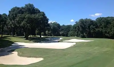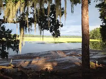 Callawassie Island's location in a large expanse of salt marsh leaves the island open to the effects of wind and salt spray, giving it maritime-like vegetation.[33] The island is characterized by a diversity of natural communities, which include brackish marsh, maritime forest, maritime shrub thicket, salt flat, salt marsh, salt shrub thicket, and tidal freshwater marsh.[34][35]