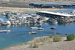 A marina, created after the Hoover Dam was built, is a common launching point for boats onto the lake.[7] It contains 589 boat slips; fishing boats and houseboats are available for rent. Callville also contains a restaurant, lounge, small store, and campground accommodating for about 80 camps.[8]