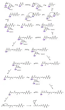 - ↑ Crimmins, M. T.; King, B. W. (1998). "Asymmetric Total Synthesis of Callystatin A: Asymmetric Aldol Additions with Titanium Enolates of Acyloxazolidinethiones". J. Am. Chem. Soc. 120 (35): 9084–9085. doi:10.1021/ja9817500.