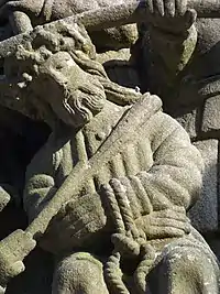 The Calvary of Plougastel-Daoulas in the arrondissement of Brest comprises a raised octagonal pedestal made from the yellow granite of Logonna-Dāaoulas, flanked by four thick arched buttresses. All the sculptural work is by the Maître de Plougastel except the horseman on the left of the crucifix which is by Millet.[1] It is a listed historical monument since 1889.[2]