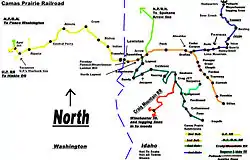 - ↑ "Camas Prairie Railroad was born to squabbling parents". Lewiston Morning Tribune. Idaho. September 30, 1990. p. 12-centennial.
