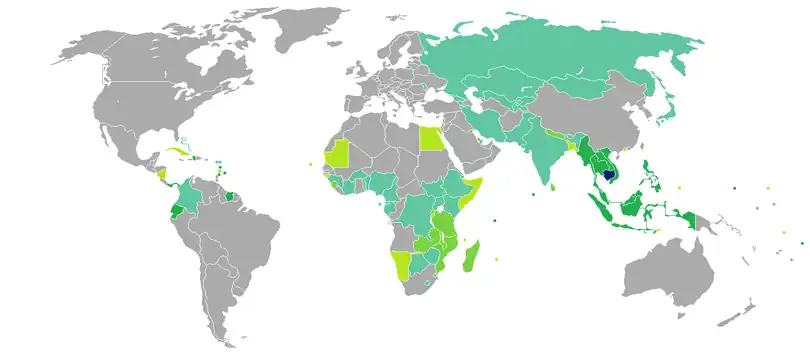 Countries and territories with visa-free entries or visas on arrival for holders of regular Cambodian passports