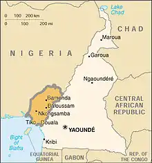 Map indicating locations of Cameroon and Nigeria