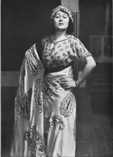 Camilla Eibenschütz was the first actress to play "Wendla" in Frank Wedekind's controversial Frühlings Erwachen (Spring Awakening) in Berlin in 1906.[2] In 1907 she played Juliet in Max Reinhardt's Romeo and Juliet, opposite Alexander Moissi.[3] She also played Ophelia, Viola, and Titania in Reinhardt's Shakespeare productions.[4] Albert von Keller painted her as Myrrhine in Lysistrata in 1909. On Broadway, she starred in Reinhardt's pantomime Sumurun in 1912,[5] with Leopoldine Konstantin, Emil Lind, and other European actors.[6] She was in Blue Bird in Berlin in 1912,[7] and in The Yellow Jacket in Berlin in 1914.[8]