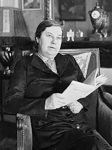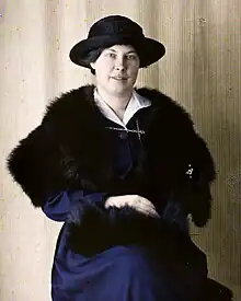 During the First World War, she set the Comité de secours national, the national relief committee with her father. She also founded and ran a temporary hospital in Paris, which earned her the Medal of French Gratitude.[1] In 1916, she was asked to participate in the organization of women in the workforce in place of the men who had gone to battle. Benefiting from her experience as head of the hospital, she created a recruitment center for women, which auditioned, tested, and employed both salaried employees and volunteers in the services sector.[2] More than 20,000 women were employed through this program. The treatise she published in 1919, "Mobilization féminine en France", documents the contribution of these women to the Allied victory.[3] This document is notable for its unique content as well as its methodical and professional form. It is carefully contextualized and enriched with statistics.[4]