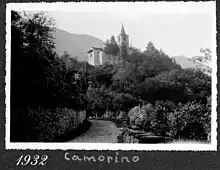 From time immemorial the inhabitants of Isone regularly crossed the Tiglio alpine pass to arrive in the Camorino area, where they owned vineyards and arable land. Over the centuries, many of them finally created a village. Camorino is first mentioned in 1237 as part of the lands of the collegiate church of S. Pietro in Bellinzona.[2] A church is mentioned in the village in 1237 and 1285, but no visible traces have been preserved. The existing parish church of San Martino was built in 1553 and completely renovated in 1888. In 1583, the village church split from the Bellinzona parish and was confirmed in 1591 as a separate parish.[2]