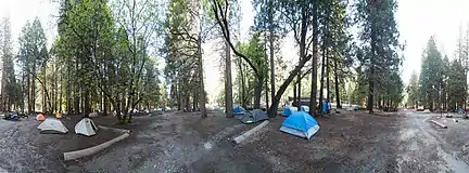 Camp 4 is a tent-only campground in Yosemite National Park in the United States.[2] It became notable after World War II as "a birthplace of rock climbing’s modern age."[3] It is located at an elevation of 4000 ft (1200 m) on the north side of the Yosemite Valley, close to base of granite cliffs near Yosemite Falls.[2]