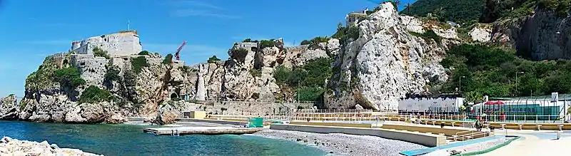 36°07′08″N 5°21′04″W / 36.119°N 5.351°W / 36.119; -5.351 Camp Bay (or El Quarry in Llanito) is a small rocky beach in the British Overseas Territory of Gibraltar. It is located off Rosia Road along the territory's west coast overlooking the Bay of Gibraltar. Parson's Lodge Battery overlooks the northern end of the bay.[1]