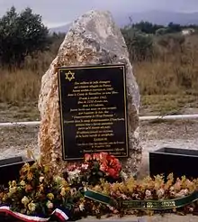 On 16 January 1994, Klarsfeld's association, Sons and Daughters of Jewish Deportees from France, erected a monument to the memory of 2,313 Jews deported from the Rivesaltes camp to Auschwitz,[15] On 2 December the following year a monument to the Harkis was installed.[10][16] In 1999 a monument to Spanish Republicans was erected.[17] These were followed by commemorations of gypsies and illegal immigrants in 2008 and 2009.[18]