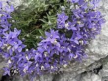Campanula waldsteiniana, the Waldstein bellflower, is a flowering plant species in the family Campanulaceae. It is a perennial or subshrub and grows primarily in the temperate area, within its native range in Croatia and Bosnia and Herzegovina.[1] In 2006, the species was recorded in Mount Snežnik, Slovenia, which represents the northwesternmost locality in its current distribution area.