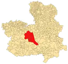 Including the easternmost fringes of the Montes de Toledo in its western part, the territory spanned across an area of 3,983 km2 (2,421 in the current-day province of Toledo and 1,653 in the current-day province of Ciudad Real), limiting in the plains of La Mancha with the Campo de Calatrava (linked to the Order of Calatrava) and the Campo de Montiel (linked to the Order of Santiago).[6]