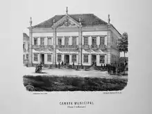 In 1942, with the construction of the Avenida Presidente Vargas and the demolition of several buildings nearby, the plaza was divided in two. One side featured the Palácio Duque de Caxias, the Brazilian Military Command building (1937), and the Panteão Duque de Caxias. The gardens of the Campo de Santana, a wide, tree-lined public promenade constructed at the beginning of the 20th century, is located on the opposite side of the plaza. Reforms of this area, as part of a city-wide project, began again in 1873 and were completed in 1880 by French landscaper Auguste François Marie Glaziou. Several species of animal are present in the Campo de Santana park, including: agoutis, cats, wild ducks and peacocks.[1] A little-known fact about the park is that it used to be the site of bullfights. They were popular spectacles until they were banned in 1907 by decree of the mayor, Francisco Marcelino de Sousa Aguiar.[2][3]