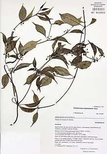 | Photograph of a herbarium specimen of Camptocarpus semihastatus[1] | |