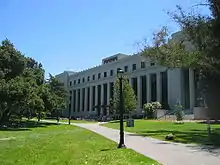 Dwinelle Hall was designed by Weihe, Frick and Kruse, architects, with Eckbo Royston & Williams, landscape artists.[45] It was built in 1953 north of Sproul Plaza, to the west of Wheeler Hall. Expansion was completed in 1998. The southern block of Dwinelle Hall contains three levels of classrooms as well as four lecture halls, and the northern block houses seven stories of faculty and department offices. It is named after the lawyer and politician John W. Dwinelle, who introduced the Organic Act establishing the University of California.