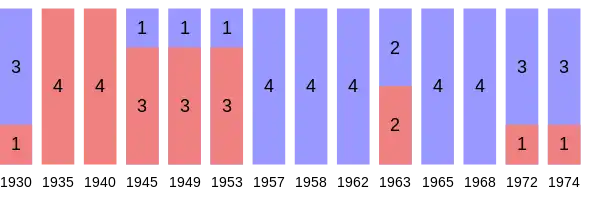 | Year | Results | ||||||