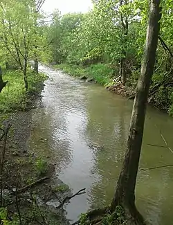 In spring 2019, and years in the past, the DEC stocked 1,330 8-to-9-inch-long (20 to 23 cm) and 100 12-to-15-inch-long (30 to 38 cm) brown trout into the creek.[32][33] Other species of fish in the creek are carp.[34] Suckers can be speared and taken from the section of the creek from the mouth upstream about 0.5-mile (0.80 km) from January 1 to May 15, each year.[35]: 23