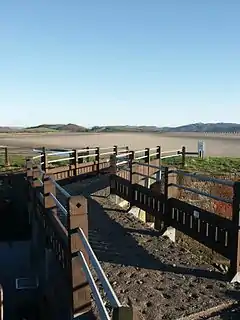 Canal Foot is best known for its massive GlaxoSmithKline Plant, located in the former North Lonsdale Ironworks which ceased production in 1938. Glaxo Smith bought the plant in 1947 and manufactures penicillin and streptomycin and other medicines.[2] Also of note is the Bay Horse Hotel and Restaurant, which was a staging post for coaches crossing Morecambe Bay during the 18th century.[3] It serves traditional Cumbrian cuisine.[4][5] It has won several awards, including being named "Cumbrian Inn of the Year" by The Good Hotel Guide in 2008[6] and "Lake District Hotel of the Year" by Lake District and Lancashire Life in 2000.[7] The point here is called Hammerside Point. Canal Foot is used by anglers, as the water nearby contains a good amount of flounders and some sea bass.[8][9]