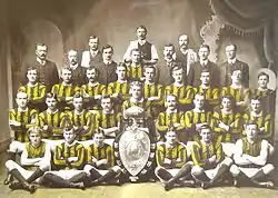 The 1923 Cananore Football Team. Jack Gardiner, the captain-coach (then aged 42), is at the far left; Ted Terry (marked with arrow) is third from the right.